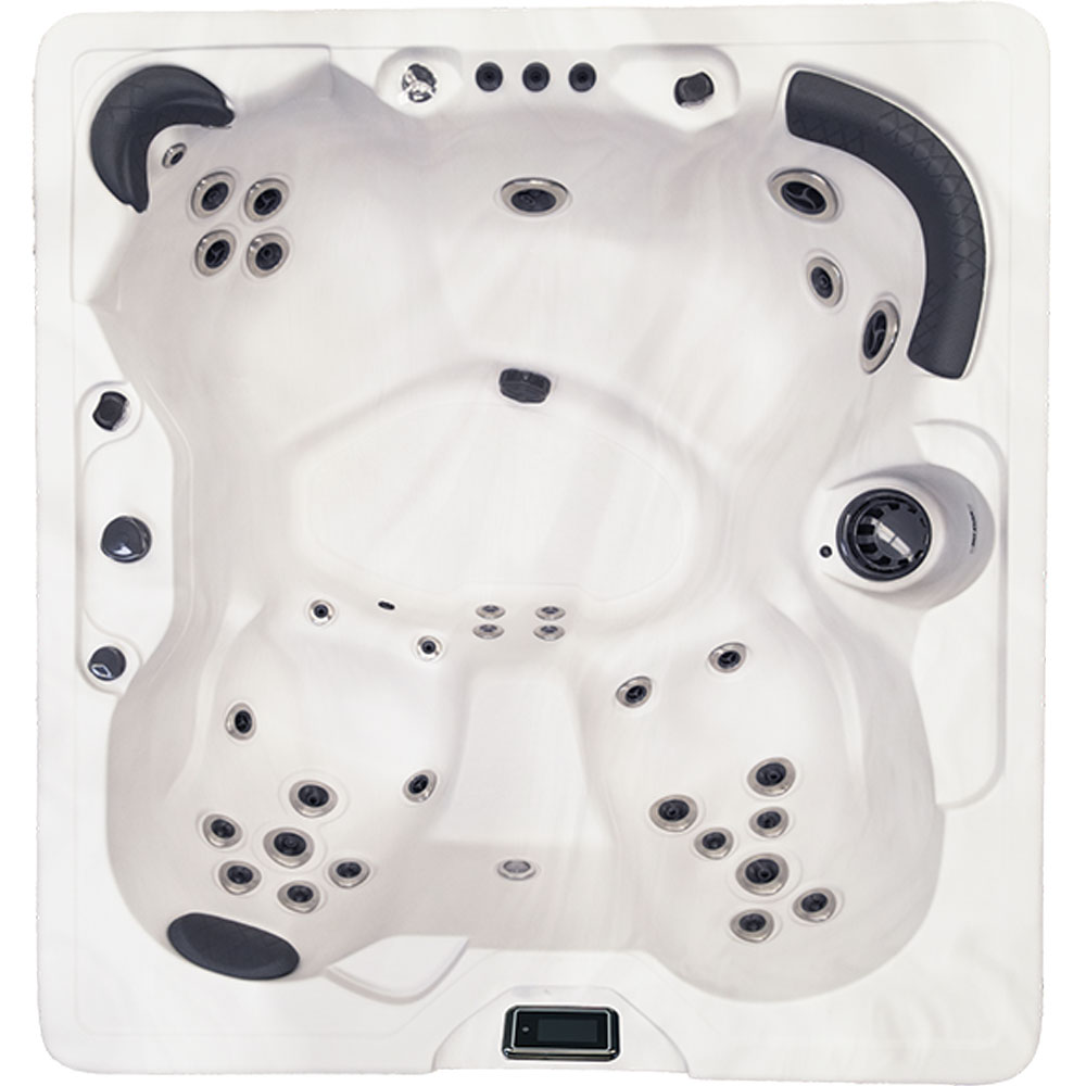 The H167B is a 6-person spa with 34 jets, including backlit TurboBoost jets, offering a premium hydrotherapy experience. Featuring LED lighting, a water feature, and an advanced filtration system with an ozone chamber, this hot tub delivers exceptional performance and lasting comfort.